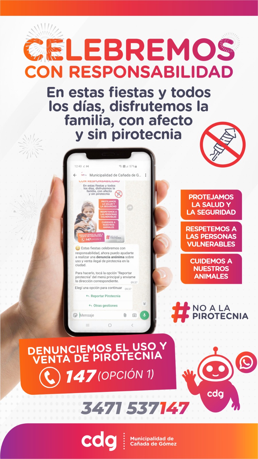 La Municipalidad de Cañada de Gómez incorporó un nuevo canal para realizar denuncias anónimas por venta y manipulación de pirotecnia, con el objetivo de fortalecer la convivencia ciudadana, prevenir riesgos y cuidar a las personas y a los animales. A…