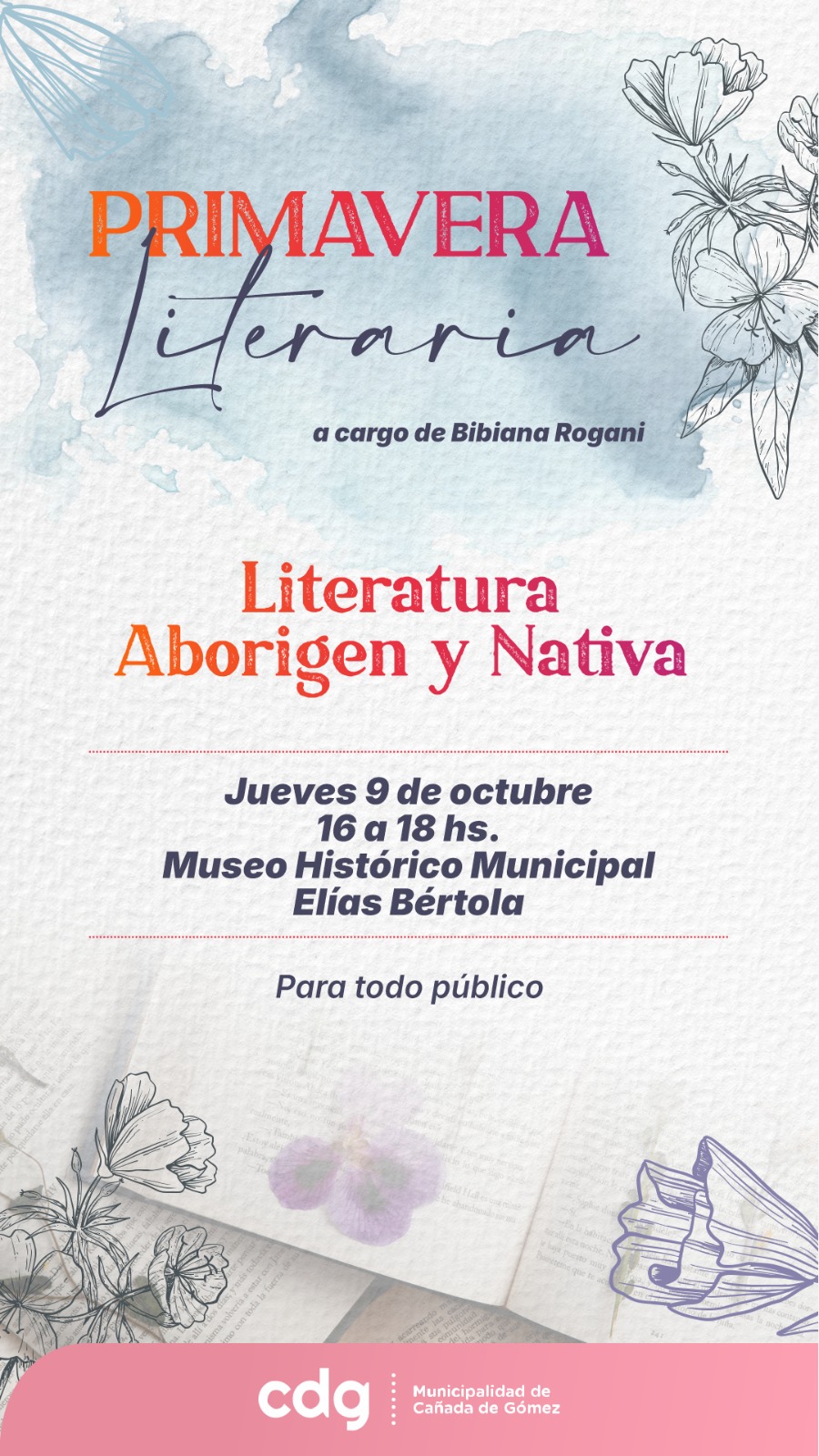 El próximo jueves 9 de octubre, de 16 a 18 horas, se llevará a cabo el “Picnic Literario” en el Museo Histórico Municipal Elías Bértola (Bv. Balcarce 850), con el eje temático “Literatura aborigen y nativa”, a cargo de Bibiana…