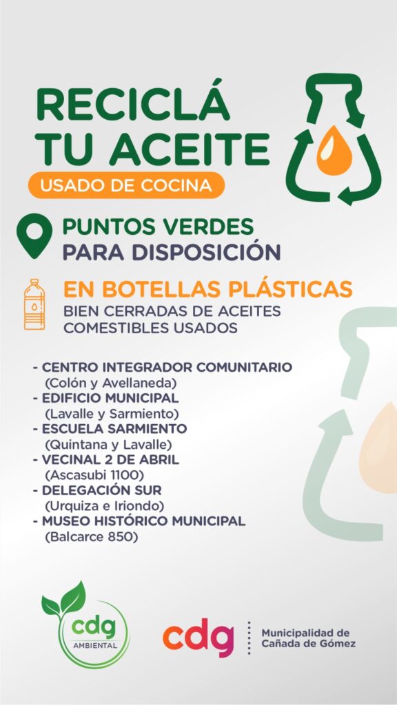 - Para el aceite usado de cocina, es importante saber que deben disponerse correctamente en botellas plásticas y llevarlos a los puntos de recolección para su correcta gestión.