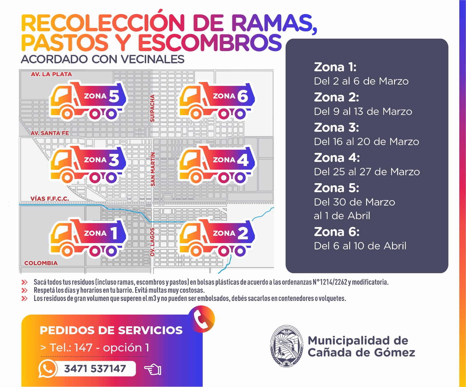 • Zona 1 (entre Colombia y Vías F.F.C.C., Ov. Lagos al oeste)
